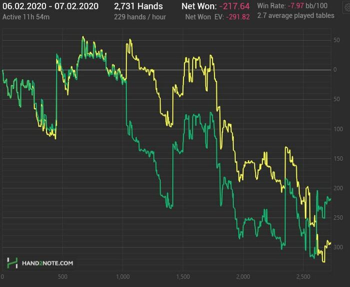 Тяжело прошли эти дни, сейчас я отношусь к этому как к закалке. Пофигизм на счет результата раздачи уже давно присутствует, а вот игра иногда все же портится после сильного переезда. Сейчас стараюсь как можно нейтральней относиться к этому. Сегодня в одной сессии было 3 кулера на весь стек сет в сет и тп. Но ничего, продолжил катку в нормальном состоянии. И как бонус, даже переехал кого-то, ну как переехал, флаш доехал против сета.