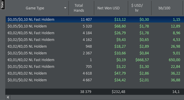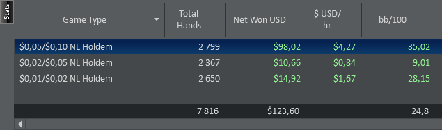 PS. Еще меня мало интересует количество сыгранных рук, больше интересует плюсовость и качество моей катки, высокий винрейт и количество выигранных долларов за месяц.