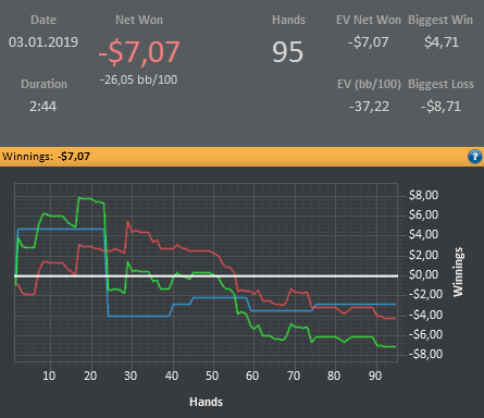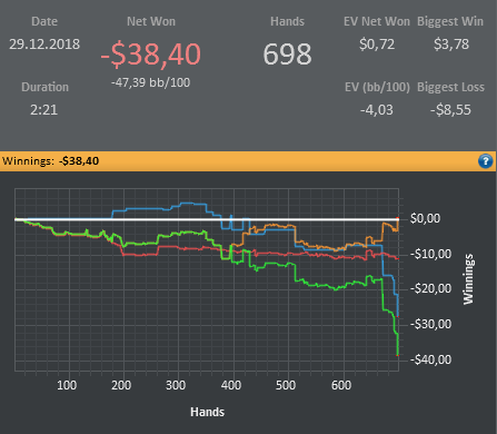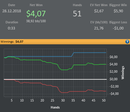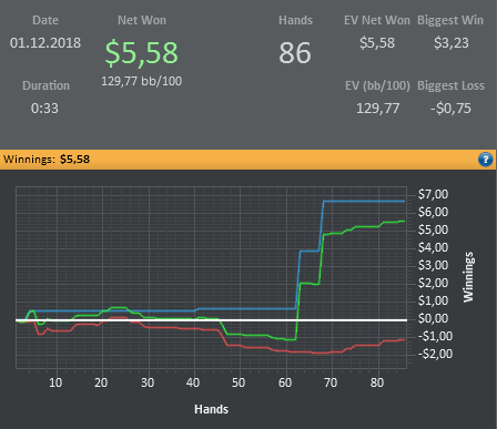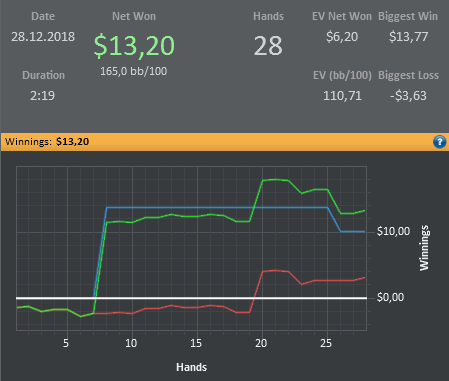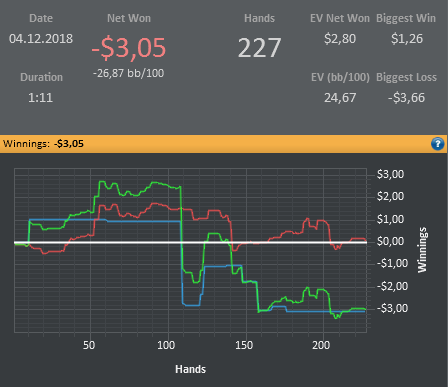 Я конечно понимаю, что для Вас, лютых регов, это все смешно, но мне такая катка приносит гораздо больше удовольствия, чем тильтовые длинные замазочные сессии, стараюсь не катать на автопилоте, думаю над каждой раздачей. Имхо, покер должен приносить удовольствие, а не разочарование.