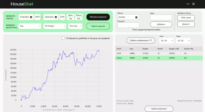 Bonik8951, в начале месяца играл 2 дня ещё на лимите 100/200 и 150/300 там дали лящей примерно на -250к. В нехт месяце буду трекать по дням.