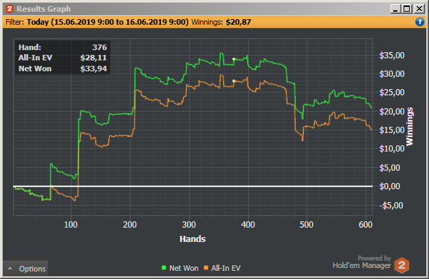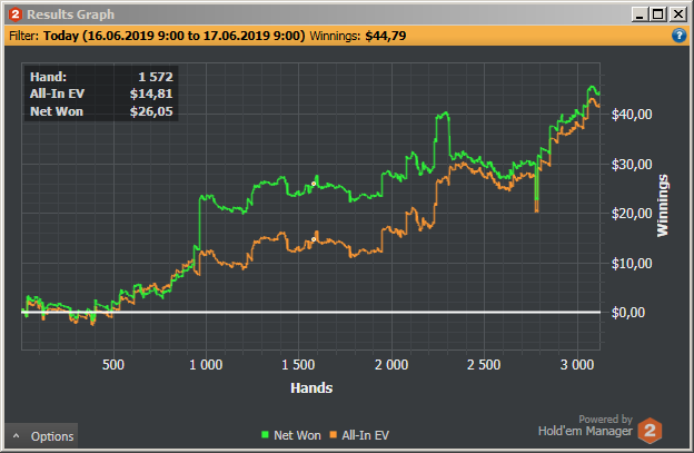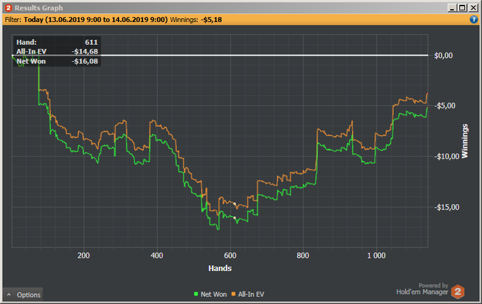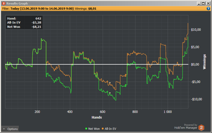 Нормально проснулся в 6 вечера, вернулся в режим так сказать (нет). В итоге попрокрастинировал с друзьями, приехал ночью домой, думал ну всё сяду ща откатаю часа 4, поставил кофе, но получилось чуть больше часа и потом, видимо кофе подействовало, я стал замечать как делаю инста решения, чисто на эмоциях, закрыл столы. В этих инста решениях затесались две раздачи против хорошего регуляра нл16, который дал мне по носу. (Кстати первая вроде норм, но рег задразнил ривером, в целом не сильный ущерб) 1-