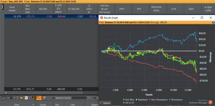 Прошлая неделя выдалась не самой приятной, пошатнула мое состояние диспа. На протяжении нескольких тысяч рук заходило весьма паршиво, ну а дальше тильт уже сделал свое дело. Начал подключать NL10 и в итоге немного замазался.