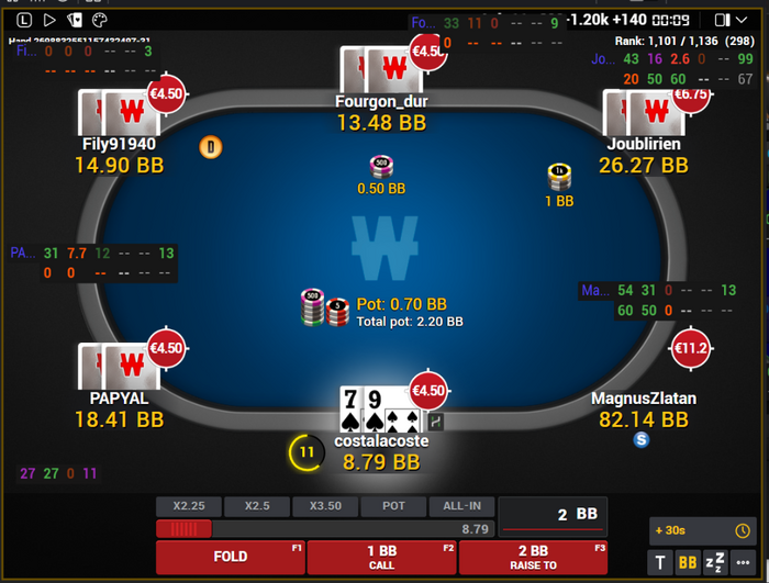два фолда, в первой прям всегда фолд против любителя, даже близко не запушит как должен, ну не пушат большинство любителей J9o T7s 86s и всякое такое, во второй обычный фолд, но там нужно будет фолдить еще низы на таком столе, слишком уж фишовый и будут закрывать шире чем должны.
