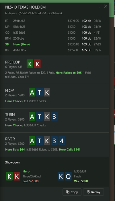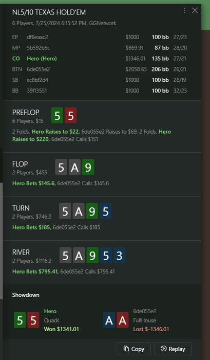 Привет, месяц трудно идет, игры мало, приходится 1к подключать, раздача одна интересная была (нет) бвб 25/50 блайнды залупил 200 бб в 4 б поте в натс оппа) Ну ничего, так то уже с грехом пополам все отмазал и даже в плюсе каком никаком, а то я думал по стандарту перед отдыхом замажусь по самые помидоры.