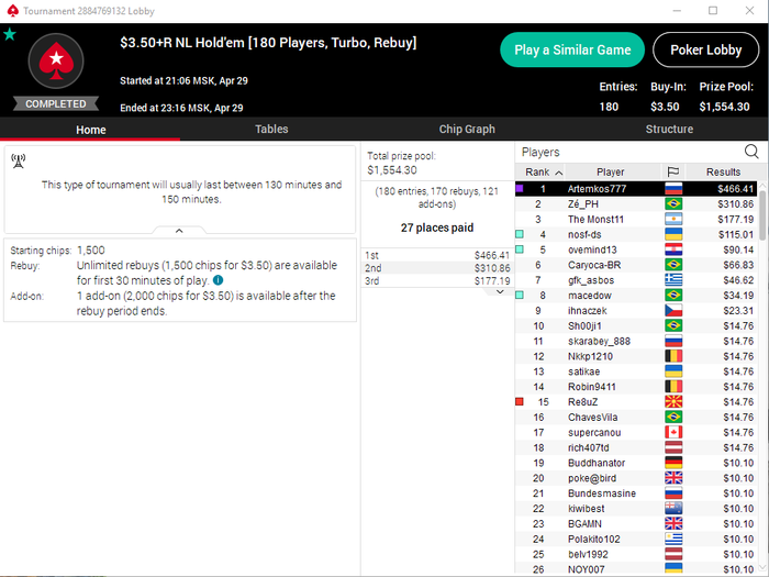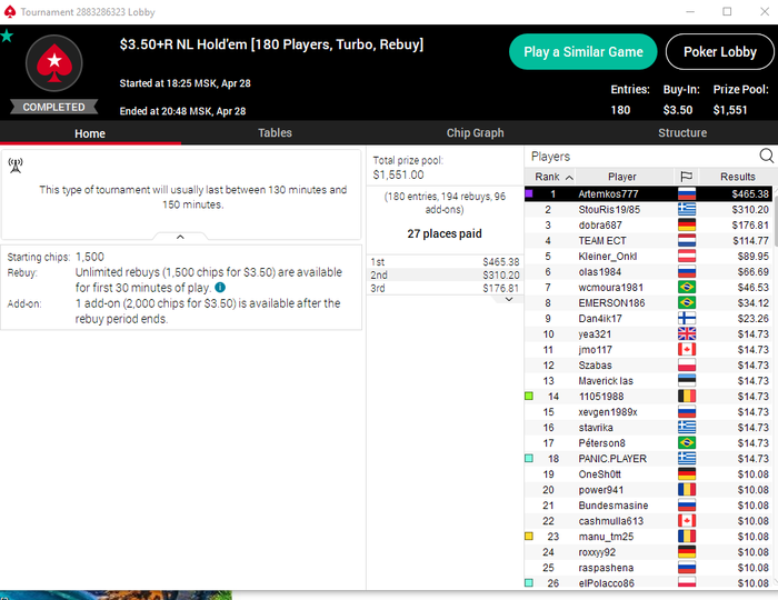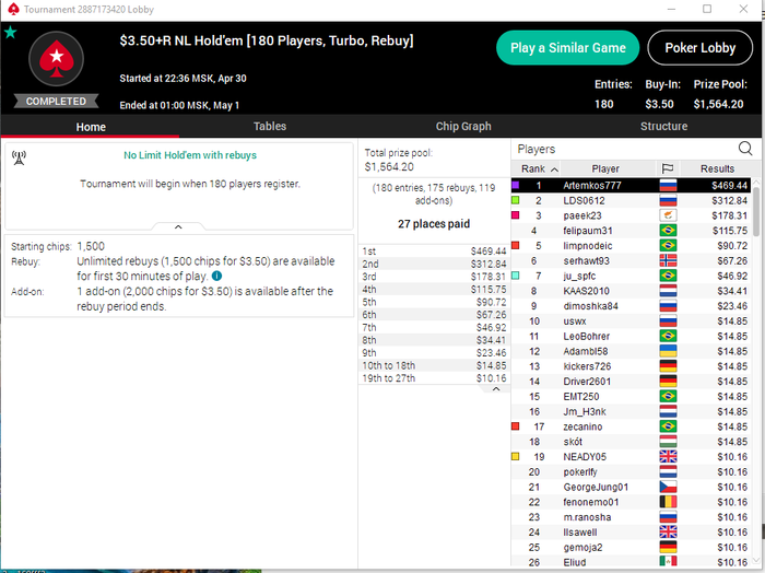 Сев катать оченьхотел начать стримить(и вчера хотел), но у меня в деревне теперь такая хрень, что именно в это время примерно интернет начинает глючить(нужно отключать даже музыку, чтобы столы вывозились, и то бывает, что даже один покер не тащится, ухожу в сит аут), а стрим изрядно жрет траффик, так что приходится без стрима и без музыки сидеть катать-куковать...