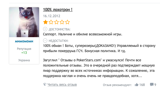 Как только у меня закрадываются подобные мысли я всегда гуглю один и тот же запрос "Покерстарс лохотрон" и читаю отзывы людей. Обычно сразу поправляет и дурные мысли рассеиваются сами собой. Под спойлерами одни из моих любимых.