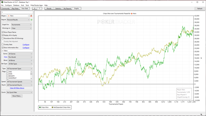 С утра отыграл 206 турниров, лег спать в 12:00 дня, проспал до 18:00, вечером отыграл 148, за день обновил свой рекорд до 354 турниров за рабочий день). Первые 66 (утренней части страдал, сделал небольшой перерыв, но собрал мозги и эмоции в кулак. В итоге очень хорошо отыграл до 206. Вечером очень хорошо размялся, разогнал мозг, чуть поздно сел за игру. Первые 80 тоже очень хорошо, потом почувствовал, что начал сильно ошибаться и переагривать, меня сильно выводит манера одного рега, начал подгорать, упираясь в топ ренжа, довольно грубо ошибался, улетел в тильт. Последние 78 - видимо накрыло стриком + протильтовал, откровенно плохо играл. Я заметил, что самые худшие мои результаты, когда я пытаюсь подстроиться под конкретного оппа, заэксплойтить лики и креативить, а вот когда собранно играю по своей страте, это очень тяжело контрить. Вывод такой - держать себя в руках, не агриться на манеру игры, не исключено, что человеку просто заходит.