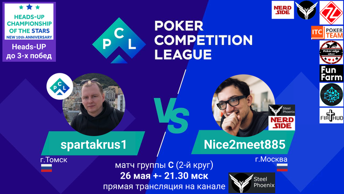 По семейным обстоятельствам Филипп Nice2meet885 не сможет продолжить участие в чемпионате и его заменяет СергейCathars1s - топ тренер Стального Феникса, игрок Spin&Go 50-100$ лимита, комментарии которого вы могли слышать на матчах Филиппа.