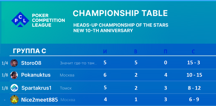 Завершился групповой раунд нашего Чемпионата по Heads-Up, определились участники плей-офф, а также те, кто сошли с дистанции