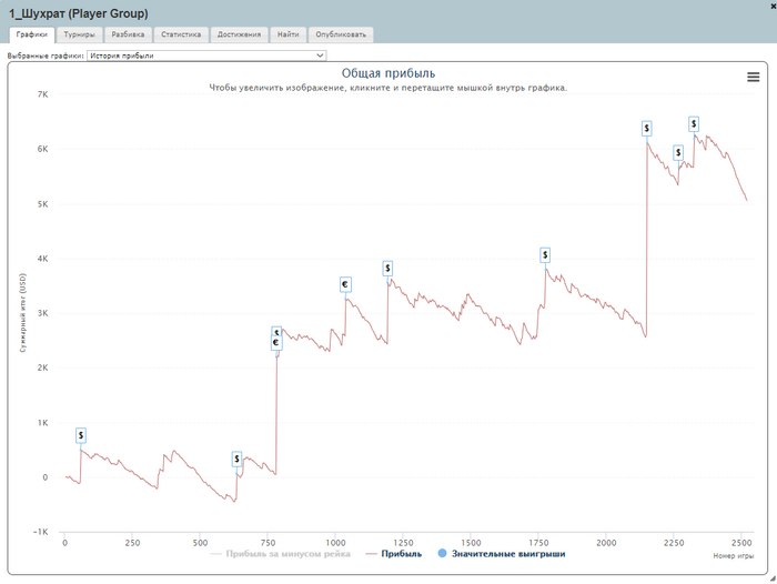 Процесс восстановления еще продолжается, иногда штормит, но лишь потому, что я стал настолько чувствительным, что мне, к примеру, не по себе сейчас в каких-нибудь выпивающих компаниях. Наверное, эту тему стоит развить в другом посте, так как здесь я хочу поставить флажок на экваторе моего договора с "Командой А". Итак, шарк говорит, что сыгран 2521 турнир, профит 5057$, текущий АБИ – 12. Но бывают вылазки на билдер за $33. И как показывает практика, не зря бывают: