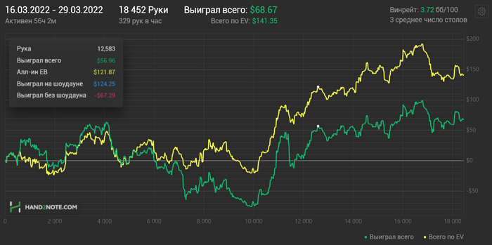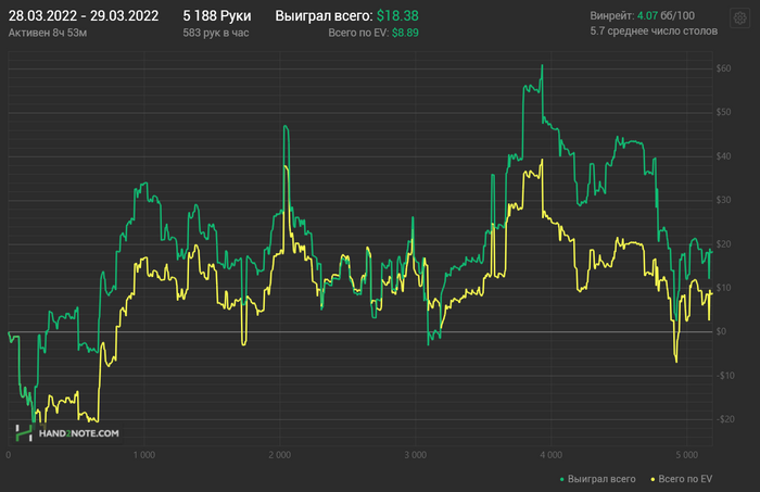 Игра была в одну калитку, и не в мою. Айпокер расстраивает, но рейкбека наколотил уже на ~70$, поэтому БР на редстаре ещё есть, плюс 14 стеков это не так много, надеюсь, что отпустит. Ещё вчера на стразах с телефона обменял старкоины на 55$, и так же вывел на скрилл. Теперь подумываю об обмене. Также если отпустит редстар, начинаю задумываться о покупке флопзиллы и GTO+. Играть по чуечке и взятым треням, конечно хорошо, но как видно работать над игрой надо.