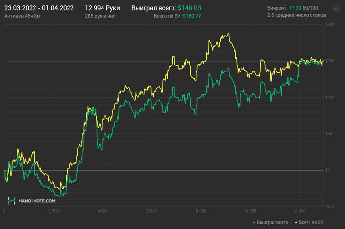 Вчера, играл сесиию и впервые узнал, мб у меня хад такой, мб у всех так. В х2н, когда нажимаешь два раза ПКМ на хад за столом, он показывает статы на текущие руки сыгранные за столом, а не на всю базу на оппа. Т.е. если вы заметили, что рег какой-то тильтует и творит какую-то дичь (ну или плюс минус нулевой игрок), можете убедиться глянув на актуальные статы текущей сессии. Обратно на всю базу точно так же.