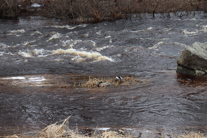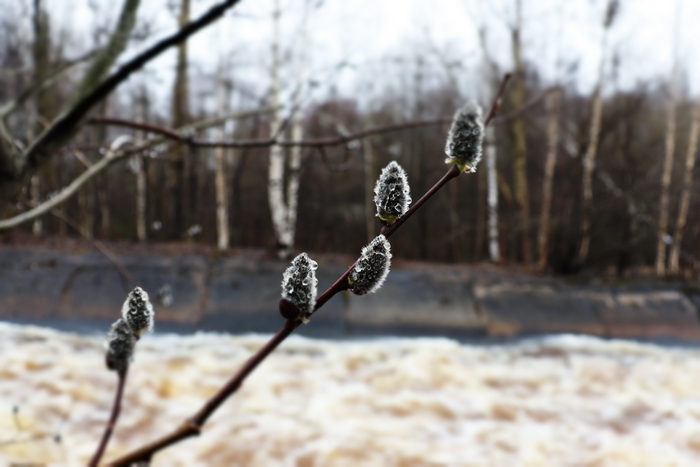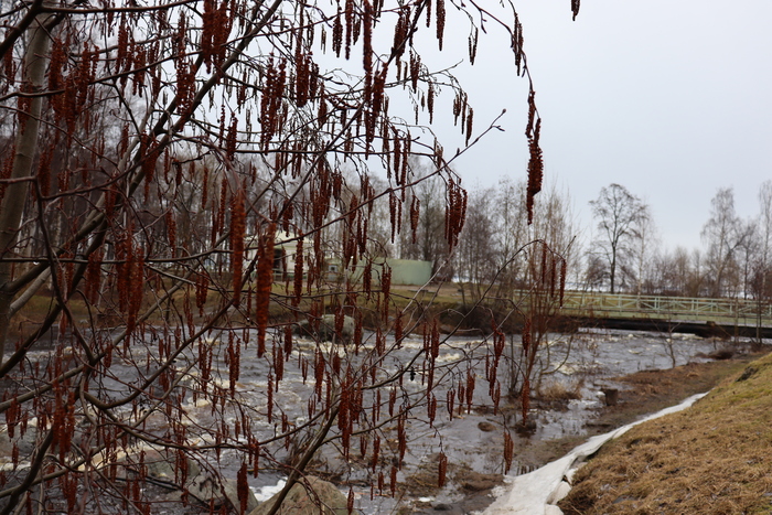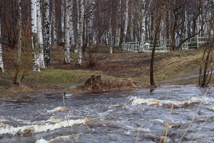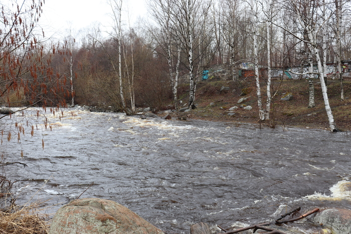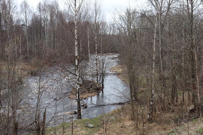 Оживающая после весны природа и речка, впадающая в Онежское озеро