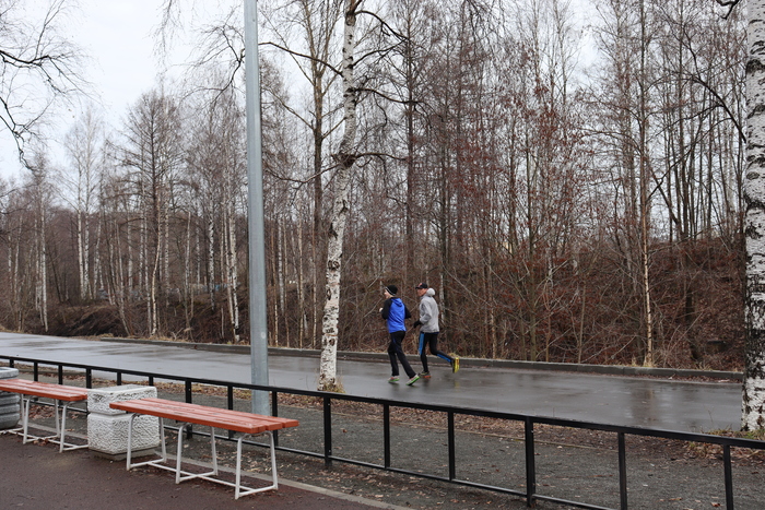 Петрозаводск оставил впечатление очень спортивного города. В любую погоду, хоть в дождь, хоть в слякоть, в парке стабильно много людей на пробежке.