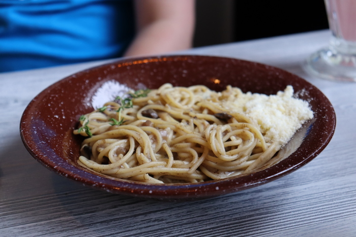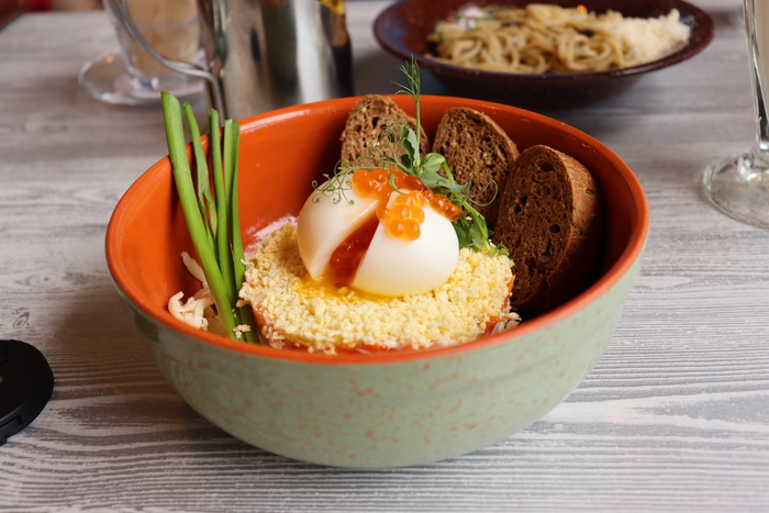 Один из самых популярных ресторанов Петрозаводска "Ягель". На фото оливье жены, паста с грибами скромно присыпанная пармезаном в углу, супчик и их фирменный десерт. Место оч популярное как среди местных, так и туристов из-за демократического прайса, Но мы честно ждали большего)