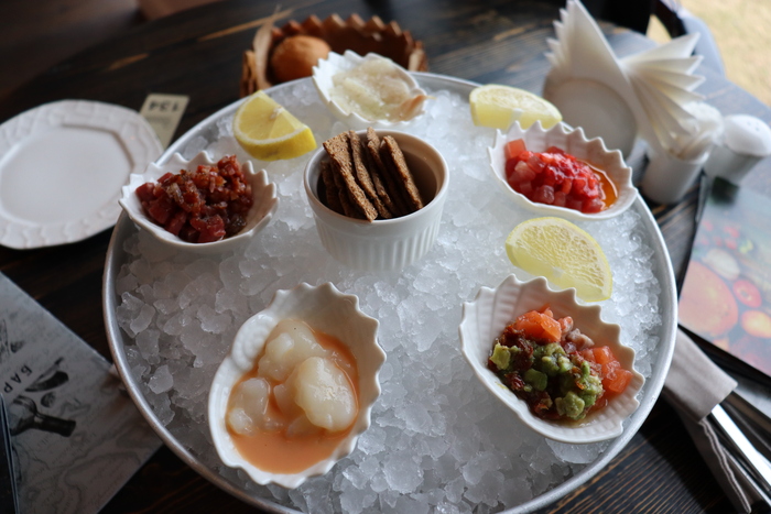 На побережье есть очень приятный ресторан "Фрегат". Особенно хочу выделить оригинальную подачу меда к сыру и наличие птитима(совместной нашей с женой любви)