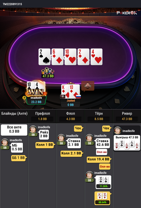Jusked @ 17.06.23Просто опп изолировал примерно в 2 случаях из 3, поэтому я и решился на олл-ин.