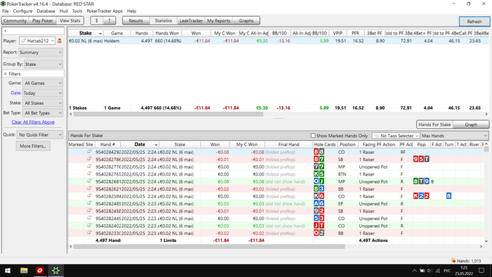 стратегия стандартная открываюсь 25 % тайтово с ранних и более лузово с поздних в не понятные ситуации стараюсь не влезать ,