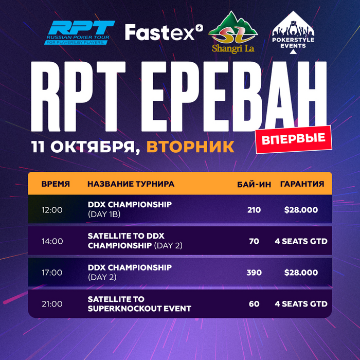 Всем привет, четвертый игровой день стартует на площадке казино Shangri-La, даже не верится, что время летит так быстро. Основное внимание сегодня будет приковано к турниру DDX Championship - демократичному многодневнику в классическом ненокаут формате, названному в честь наших партнеров, сообщества любителей покера - DDX.