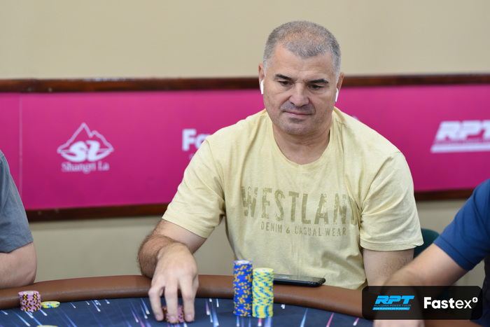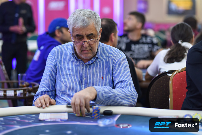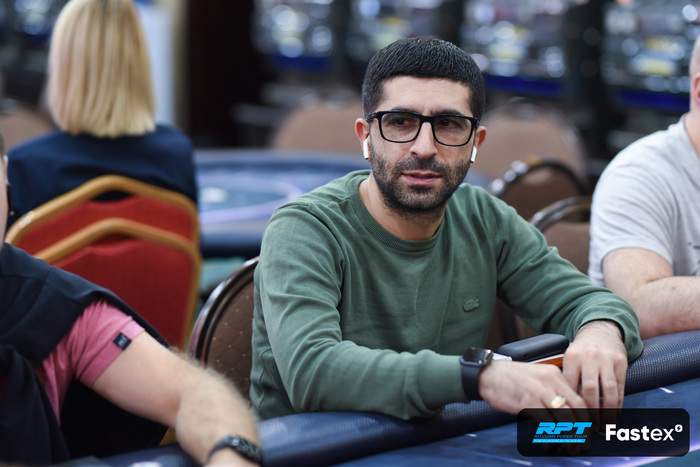 Гурген Бахшецян все же выбыл, отгрузил все фишки в бокс Арега Ованнисяна. По терну Гурген выставился с топ-парой, но попал в две пары Арега, которому по риверу докрутили их еще до фулл-хауса. Ованнисян - 130,000.