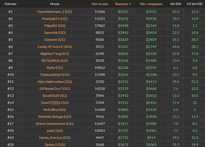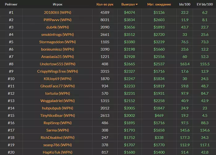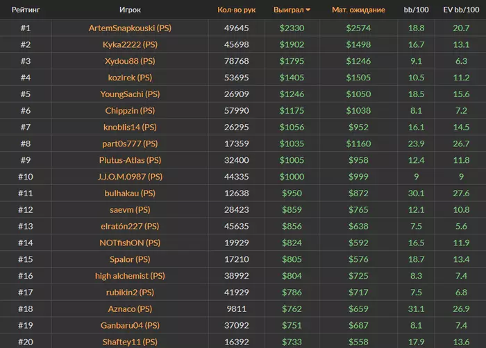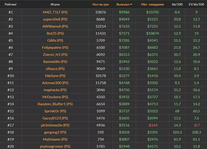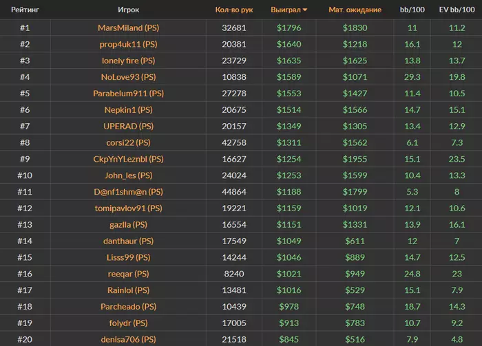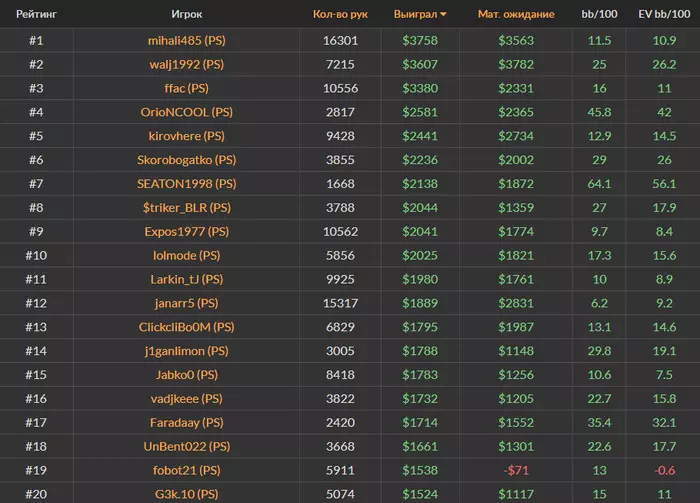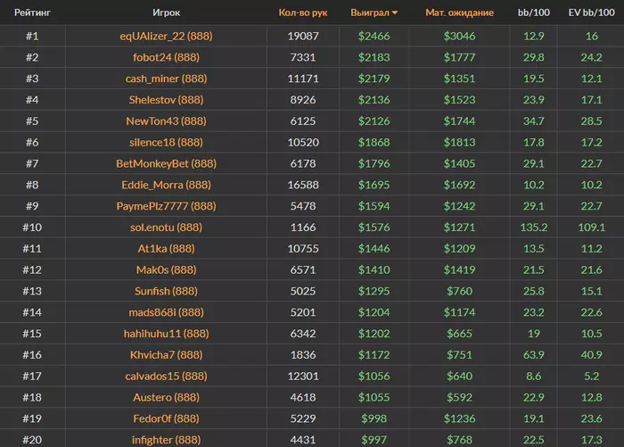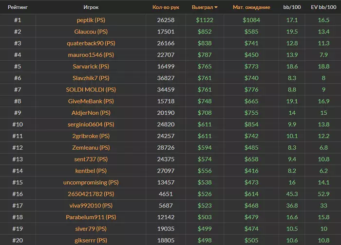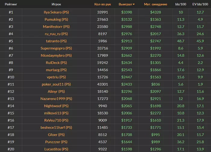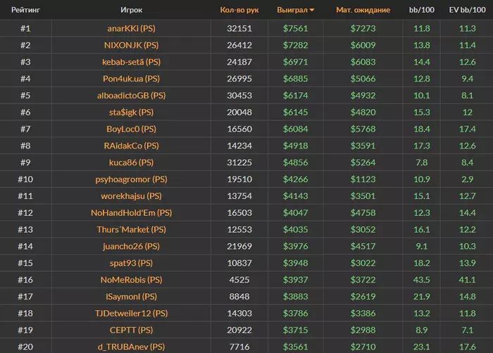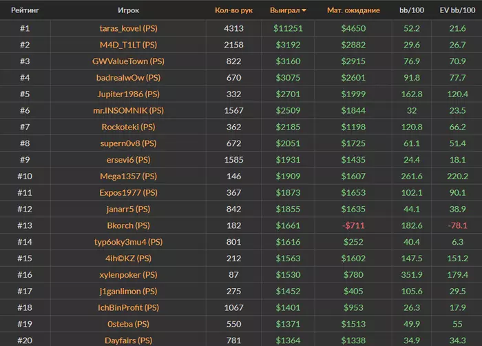 так мало рук на ПокерОК у топ виннеров за месяц?оО