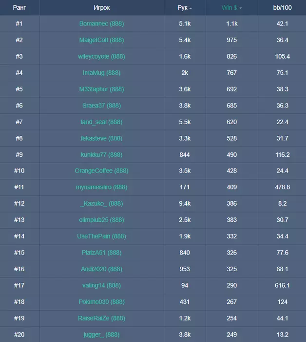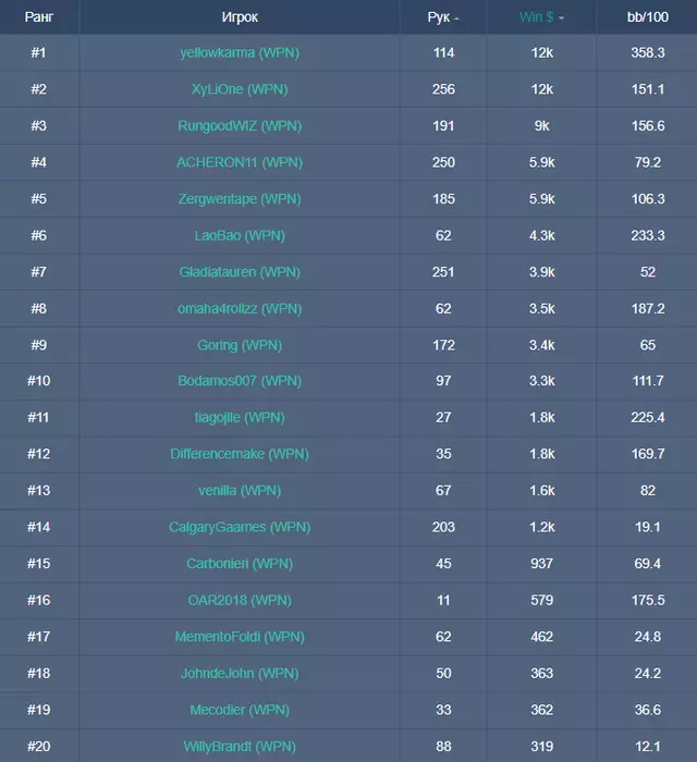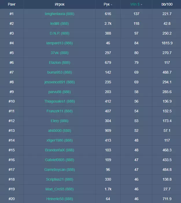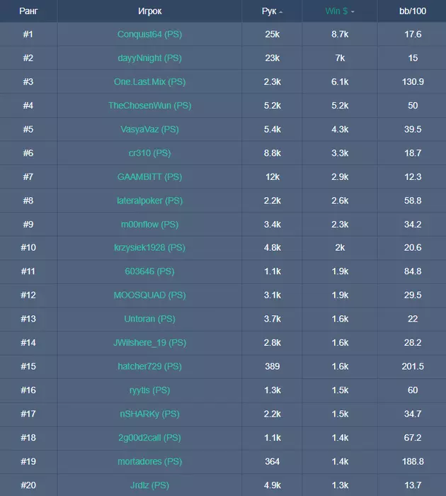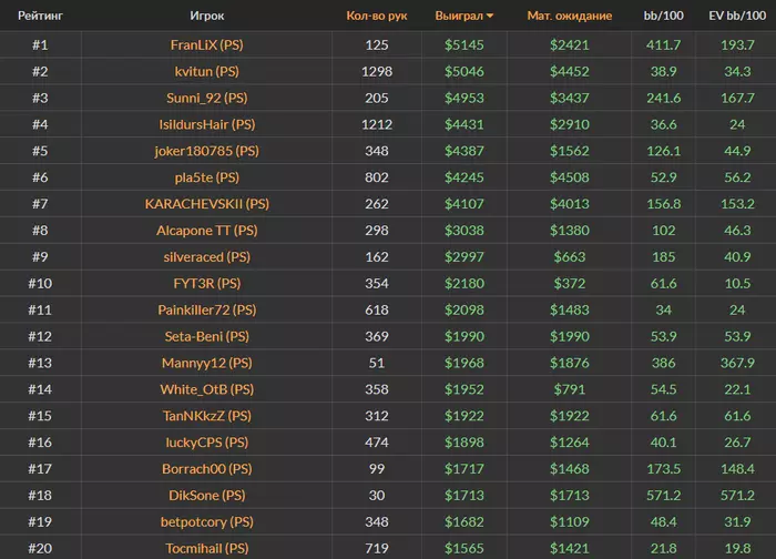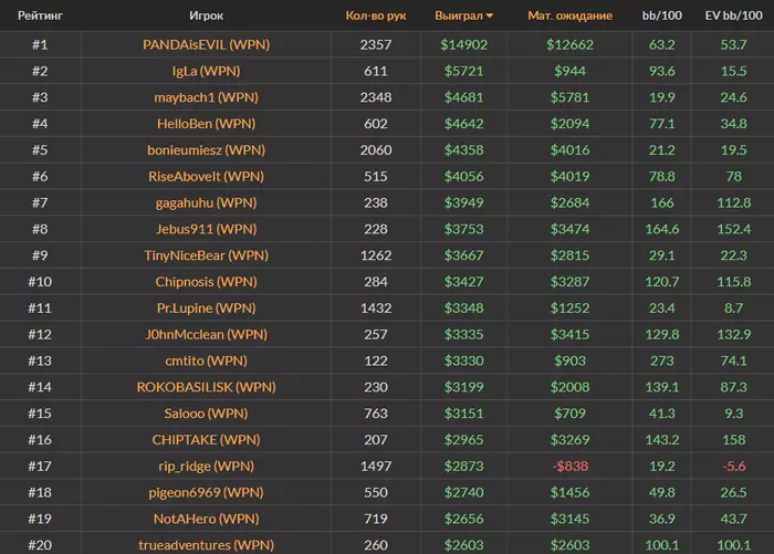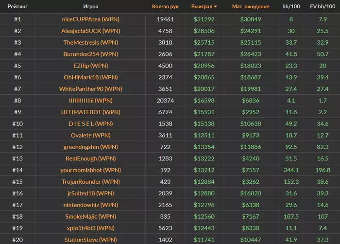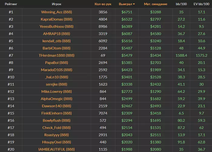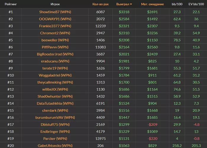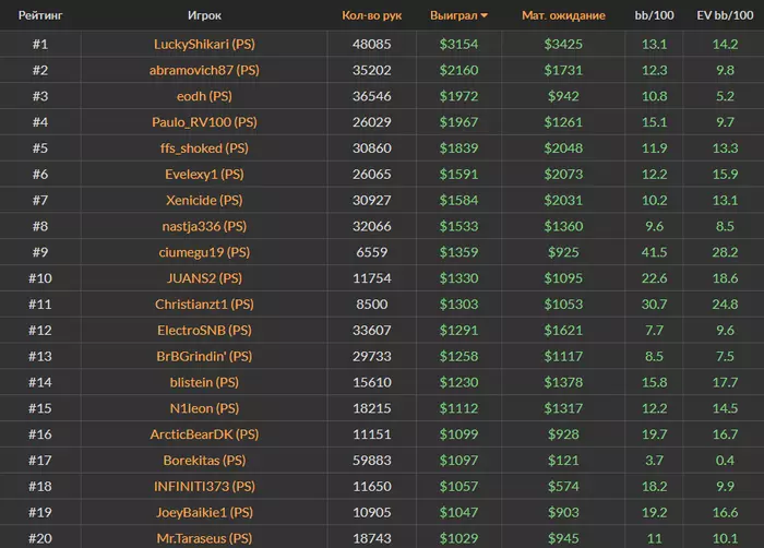 так мало рук на ПокерОК у топ виннеров за месяц?оО