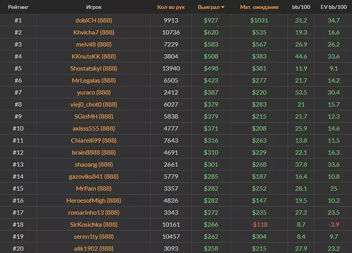 Покерок кажется вообще не трекается, статы по несколько недель не обновляются.