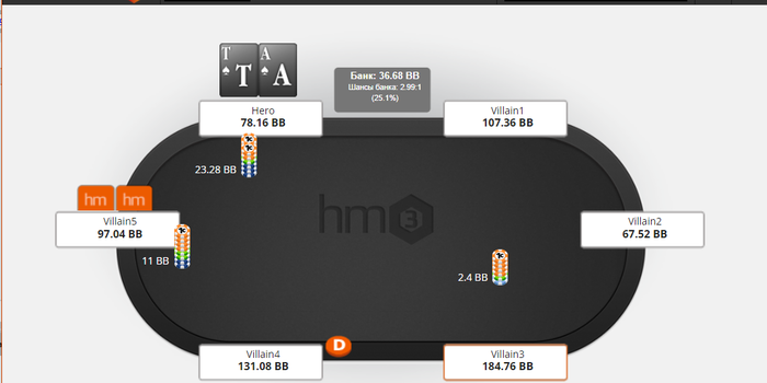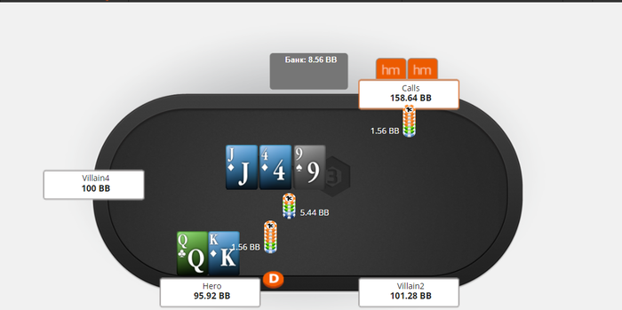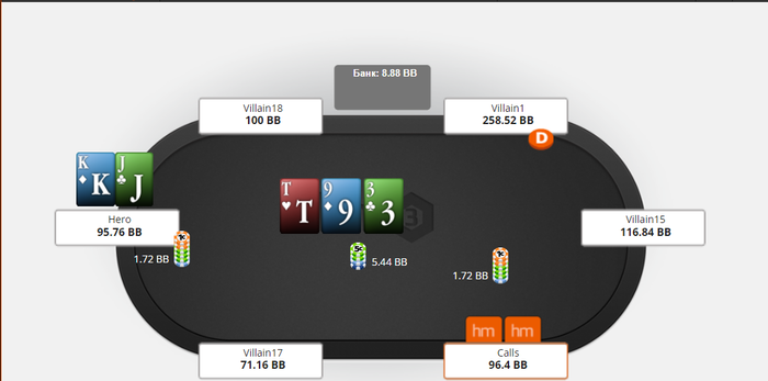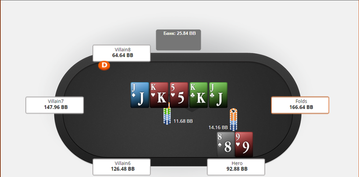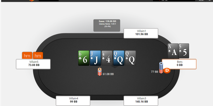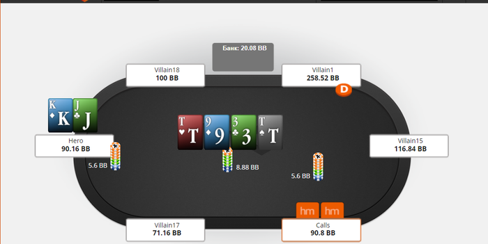дефнул руку из около низа ренджа, в дабл чек сыграл бет 50(изображаю валета), получил колл