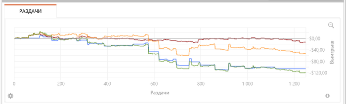 Каждую сессию графики скидывать-это слишком, в месяце получается 23 рабочих дня примерно, я просто устану и это приестся. Думаю поработаю пару троек деньков, а потом приду рассказать свои мысли по поводу компетенции своих оппонентов, уровня моей игры, и моего рана. Елси будут всплывать какие-то раздачи, на мой взгляд любопытные, запощу