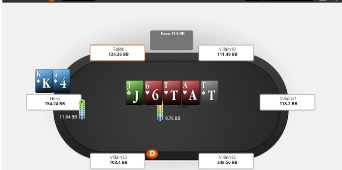 опен 4 бет пот, сомнительный блеф, пока даже не дал ему оценку и не проверял нигде