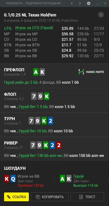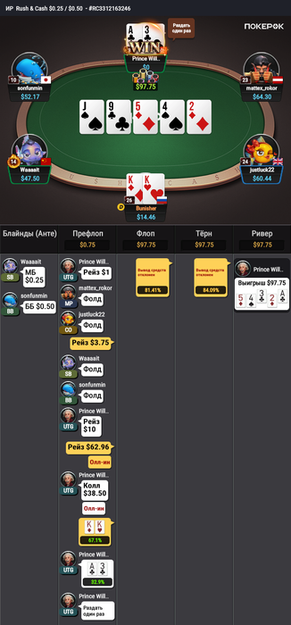 Чел с впипом 3%, колл пуша BU vs EP с A3s, красиво?😄 у меня таких раздач за 12к на нл50 набралось с дюжину.