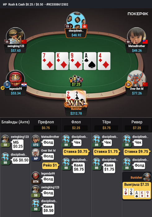 Такая сессия рано или поздно случилась бы, -6,5би, не добрал 2,5би. Шесть би для раша обычное дело. Старался лишнего не проиграть. За ЛБ залутал 75$. Жаль не дают сыграть хотя бы в турнире неудачников, ни одного бб не нафармил.