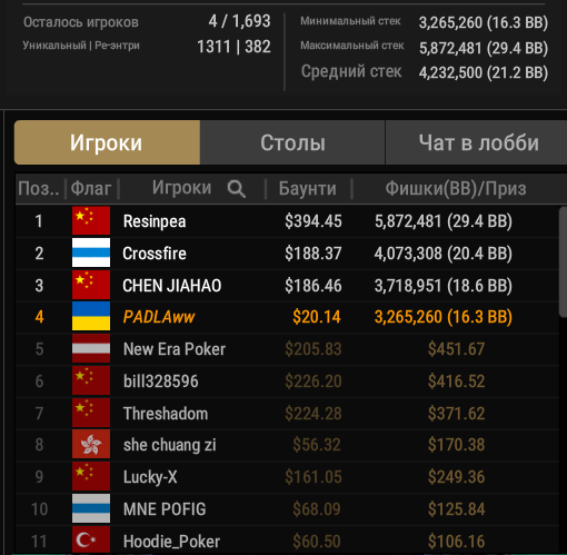 Играя, морально подустал - от этого и отлетел 4м. Да еще эти ноки, всю энергию высасывали. Сегодня был 1 нок-турнир, остальные обычные, так в обычных нокаутировались дай боже 😅😅😅