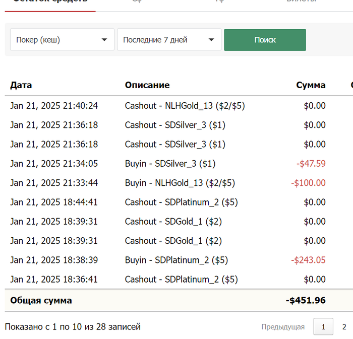 Была депнута ровно также сумма, что и выведена ранее. И того от начального депа 300$ ушли в минус 150. Потому что люблю кеш и казино: