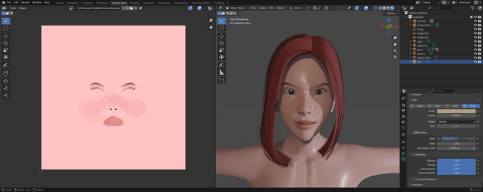 Вот наносил тестовые текстурки на свою модельку. Плоские ресницы выглядят не очень, нужно делать их в 3д.