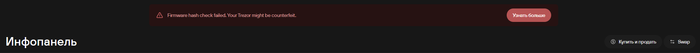 Гуглю значит, че такое counterfeit. Если перевести полностью: "Хэш вашей прошивки не прошел проверку. Ваш Трезор может быть ПОДДЕЛКОЙ." "Все, пизда! Минус больше трети накопленного банкролла или 6k usdt разом, - думается мне. "Ну треть, это хотя бы не все." - подбадривает внутренний оптимист. Ладно, чекаю предлагаемую инфу на оффсайте, что делать в такой ситуации.