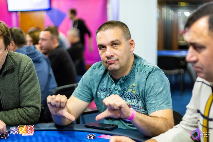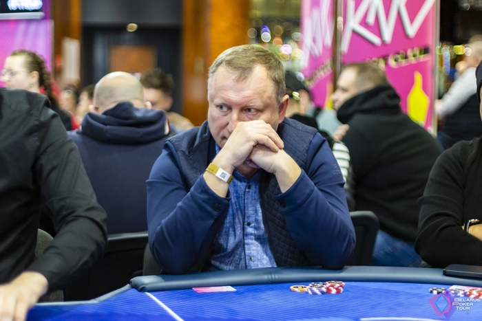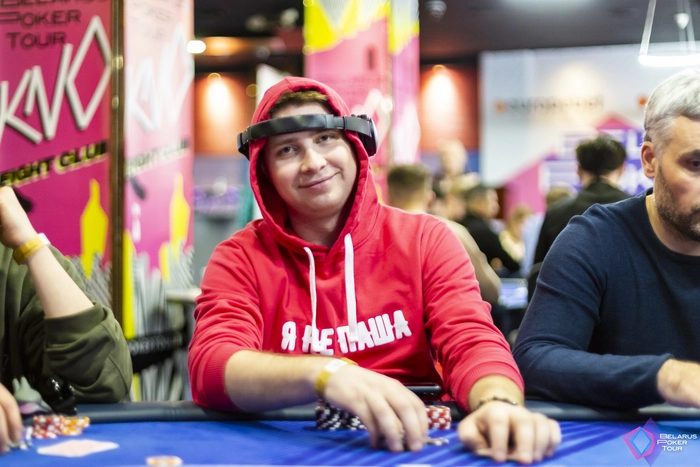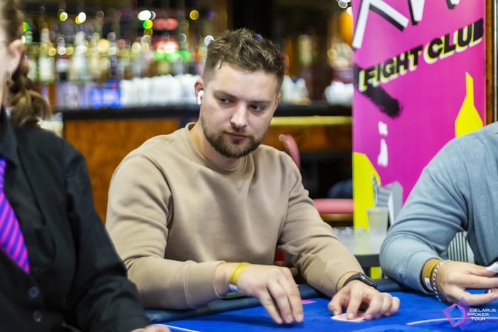 За другим столом в это время первый нокаут сделал Владияр Семенов. Устоял с против Максима Михайлова.Теперь имеет стек 81к.
