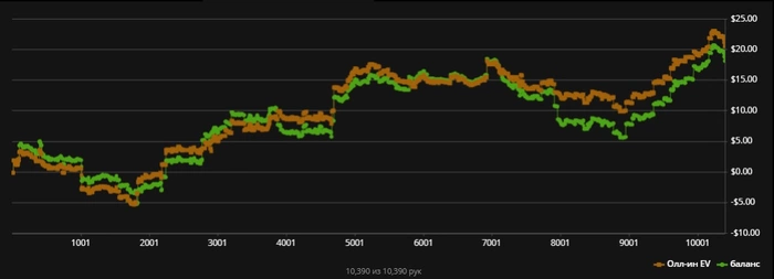 Вроде шел неплохо, но как только стал что-то выдумывать, сразу начали по всякому говну вскрывать)) Итог - нечего придумывать тут, играть тупо по карте, на все рейзы падать)