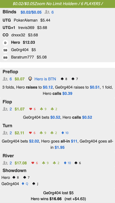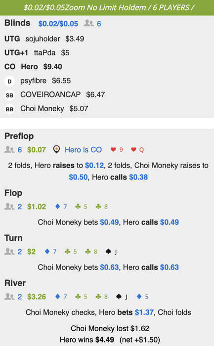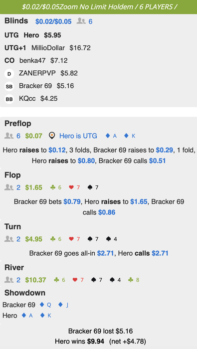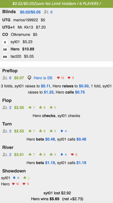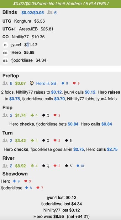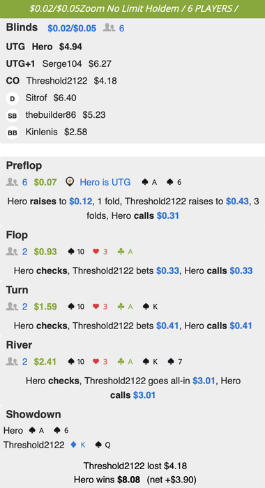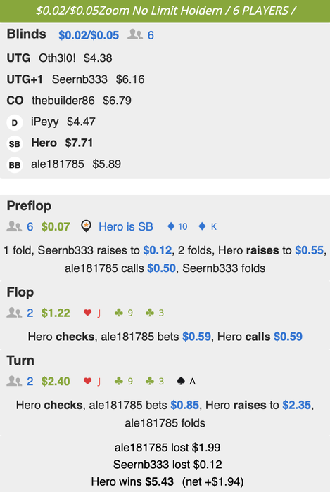 Я вот думаю, если у меня на нл50 1bb/100 мсс стеком, это 0,50$ профита + рб 25% это еще около 1,25 доллара где-то с 100 рук рб т.е сумарно с 100 рук два доллара плюс минус выходит, то с такими ребятами на нл5 зум, могу ли я иметь больше $/h играя 4 стола в БСС, нл50 играю рег столы, а тут зум 4 стола можно гриндить, и соотвественно вместо 200 рук в час + селлект трата время, рег месиво играть 1000 рук в час, с каким-то не знаю каким винрейтом с такими ребятами, давно я не видел что-то подобное за столами