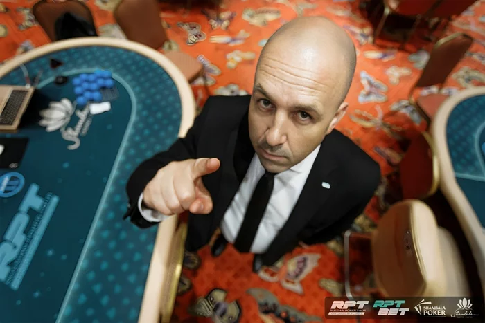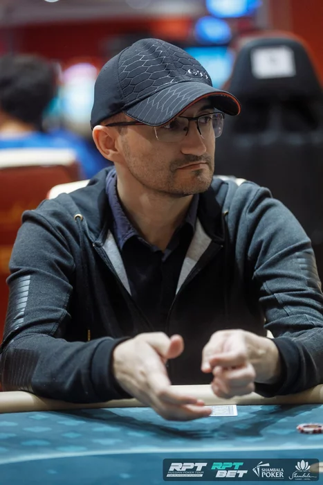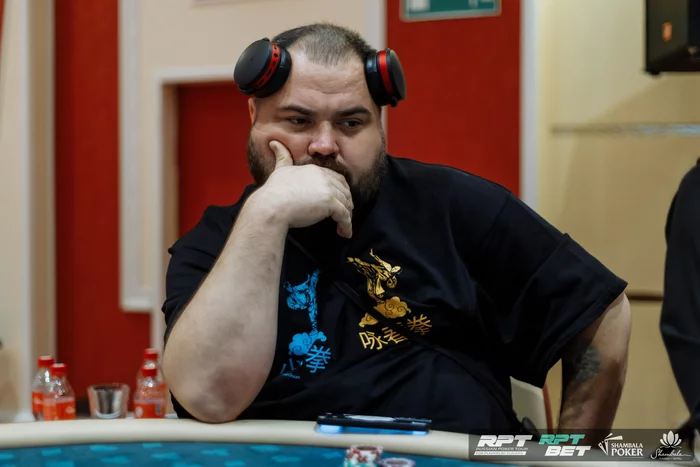 На 1,5 часа сегодня опоздал к турниру Георгий Хачатрян. Ворвался в зал прямо на баббл. Сначала побежал к сателлиту, но ему стали кричать соседи по столу: