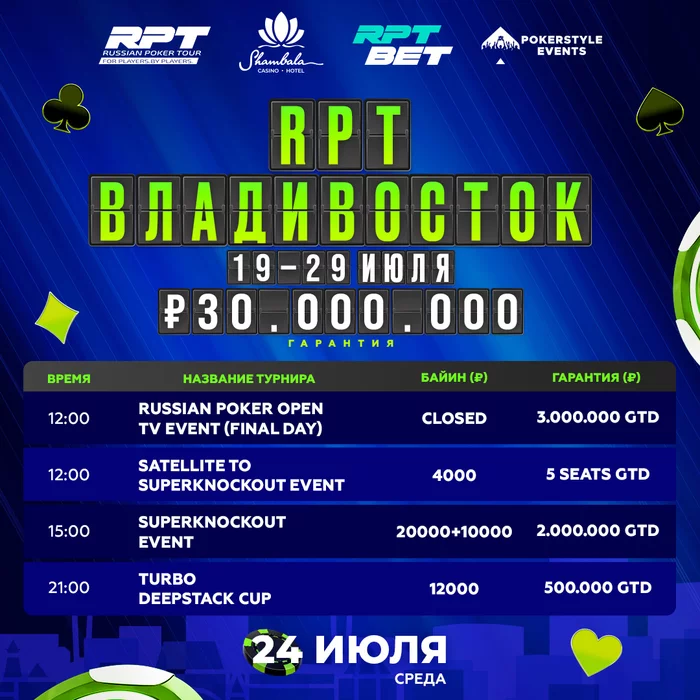 Ровно середина серии RPT во Владивостоке. Сегодня сыграем еще 4 турнира: