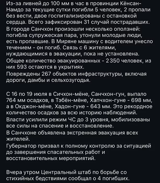 Ливни в Корее бьют все рекорды, уже есть погибшие.В моем городке все спокойно и безопасно.
