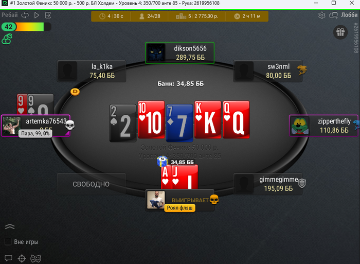 П.С (из архива) собрал флеш рояль против подписчика. Артем БОЛЬШОЙ ПРИВЕТ!🤝