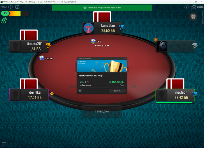 Играл я откровенно паршиво, а в турнирах, где была хоть какая-то надежда, она разбивалась ещё до зоны призовых.