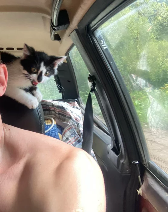 Масяня перенесла дорогу относительно спокойно. Сказалось наверное то, что перед этой поездкой я потихоньку приучал её к поездкам на машине, взяв её с собой в свой дом в белорусской деревне. Хотя в самом начале она снова залезла на подголовник и, высунув язык, от страха опять начала пускать слюни. Выглядело это с одной стороны смешно, но с другой, было её жалко, но потом папка её быстро успокоил. Посадил её на колени и первое время гладил, а потом она уже вообще уснула. И за всю дорогу даже ни разу не сходила в туалет.