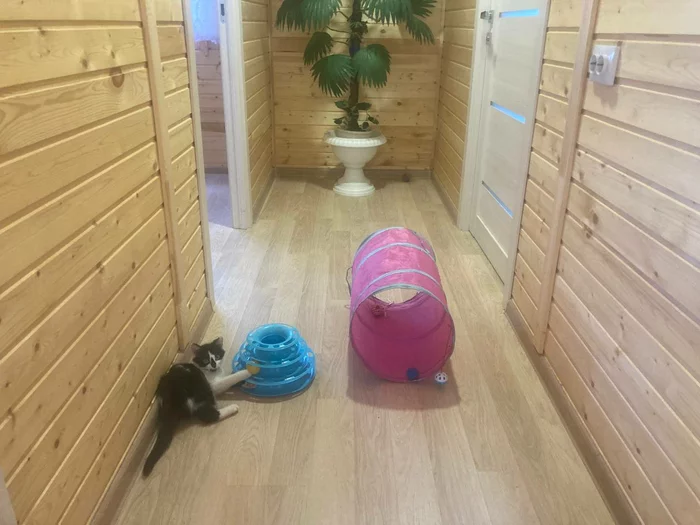 Сейчас уже обживается в новом доме. Тут ей ещё и кучу игрушек новых передали. А ещё здесь у неё теперь 5 комнат и целый второй этаж, а за окном куча травы, деревьев и огород. Рассматривает всё с любопытством. Забыла уже наверно белоруска, что сама родилась на улице. И как голосила на всю улицу под кустом. Повезло ей конечно...