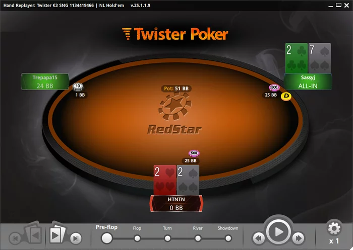 Самое лучшее время для игры: с 2:00 до 8:00, там начинает временами творится откровенный треш) Вот пример, первая раздача в x8 спине, за все время ни разу такого не видел днем, оппонент сыграл лимп/колл