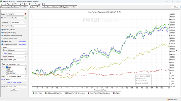 В пятницу отдыхал от покера, поэтому сегодня был настроен прям очень много откатать. Начался день ужасно, первые 170 спинов были сыграны с отрицательным чипев, постоянно ехал ниже и смотрел на кулера. Благо дальше ситуация начала улучшаться, плюс получилось прям хорошо перебрать по зеленой.