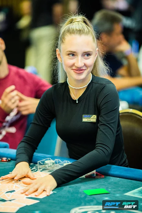 Яна Щербук и Анастасия Горбункова выставились на все фишки на . Яна уже с готовым стритом , Анастасия с попаданием в десятку и двухсторонкой .