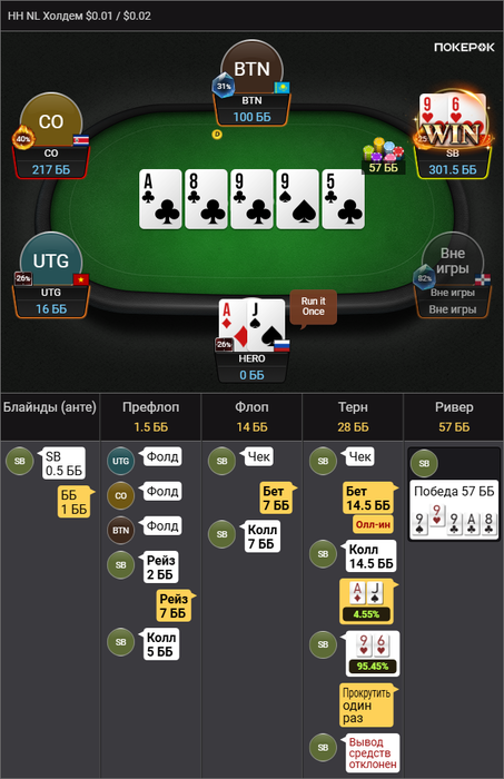 И кстати рэнж трибета против ранних позиций должен быть более тайтовый. это слишком широко, еще и с учетом короткого стека. Да еще и против нитового ВПИП 19.